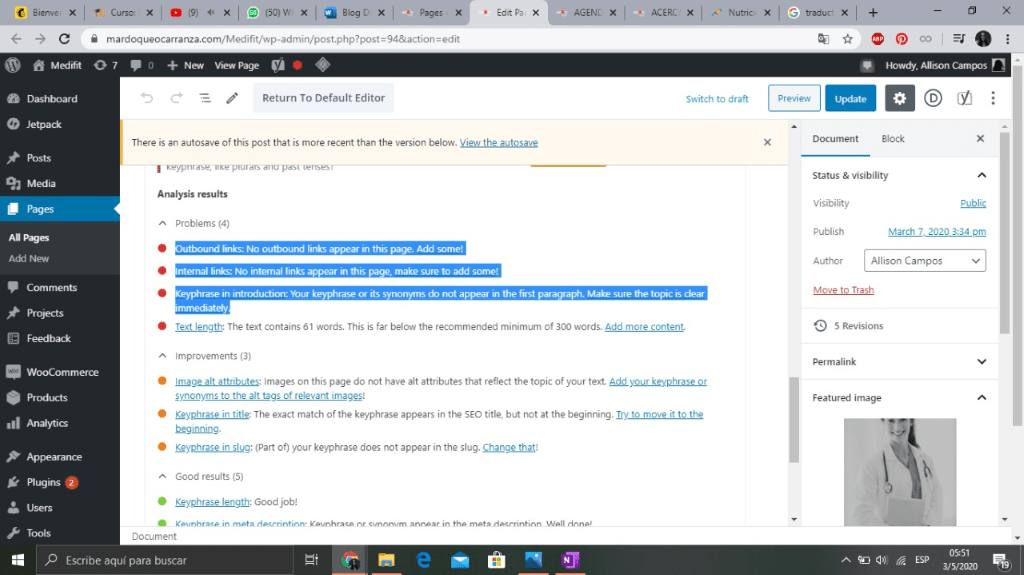 Una vez el blog esta completado, hay que ir actualizando y refrescando la información, (como por ejemplo: consejos, recetas fáciles, frases diarias, etc) Para mantener al usuario al tanto de las innovaciones de MediFit. Si la empresa comienza a implementar más servicios o productos, se ponen en el espacio correspondiente. Hay que mantener un flujo de información constante para que el usuario se sienta atraído por estos sucesos.